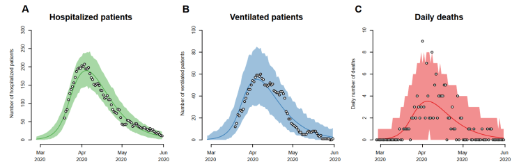 1) Kanton Zürich: Hospitalisierte, beatmete, und verstorbene Patienten