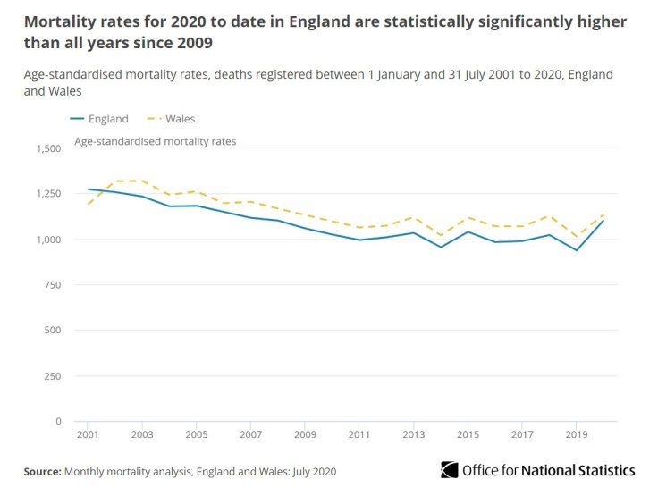 The British ONS recently published the age-adjusted January to July mortality statistics. While the 2020 covid increase is clearly visible, mortality is comparable to pre-2009 levels. Oxford CEBM professor Carl Heneghan explained that the covid IFR dropped to 0.3% by the end of July and the pandemic may end up “no worse than a bad flu season”.