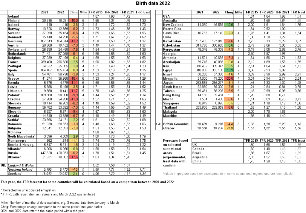 Indirect effects of lockdowns or the pandemic include the fact that many countries have seen a significant decline in marriages and dating in 2020 and 2021, which could explain a subsequent decline in births. Economic and psychological factors could further exacerbate the situation, although the sudden decline in early 2022 remains somewhat mysterious.