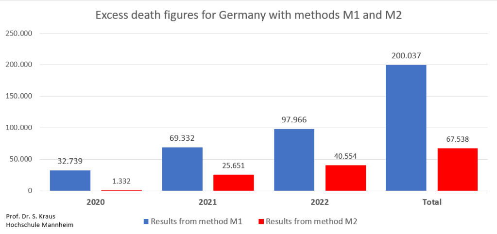 If calculated correctly, German excess mortality since 2020 is only about 70k instead of 200k, as the following chart by German professor of Medical Data Science, Stefan Kraus, shows. Professor Kraus notes that the popular “5-year models often lead to massively distorted results”. Ironically, excess mortality was exaggerated first by covid alarmists and then by covid skeptics and vaccine skeptics.