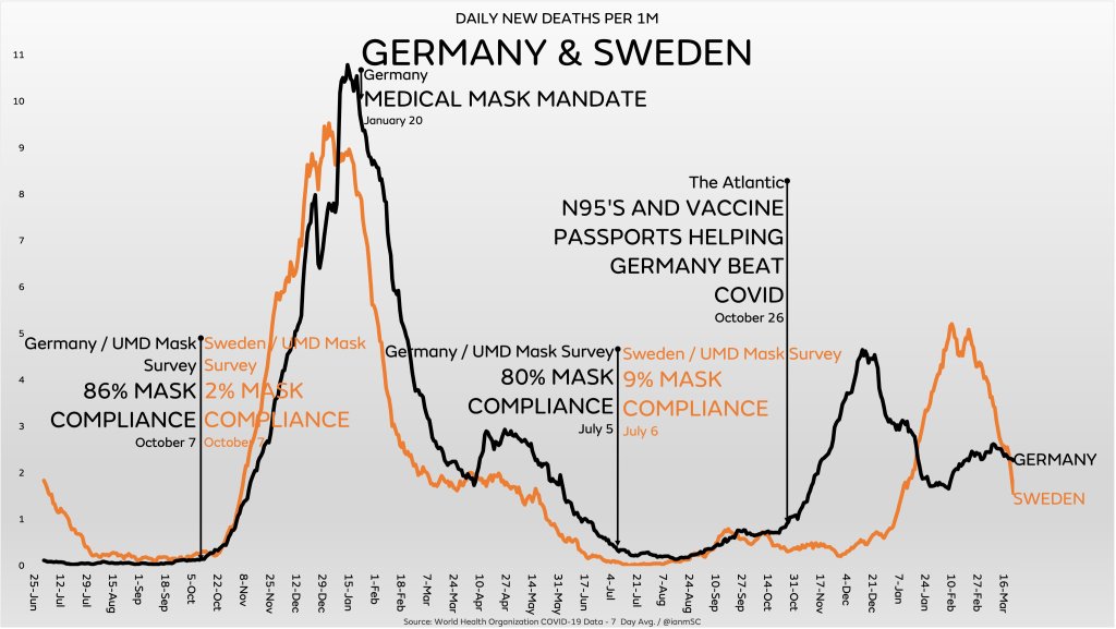 Figure: The failure of lockdowns and masks – Germany vs. Sweden. (Ian Miller)