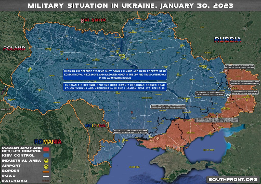 Figure: Military situation in Ukraine by February 2023 (SouthFront)