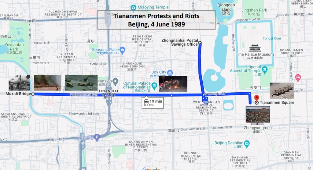 The deadly clashes occurred mostly on West Chang’an Avenue near Muxidi Bridge.